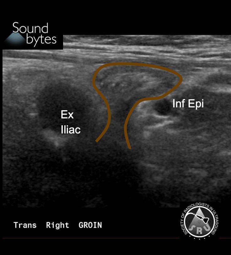 Findings: Herniation of intraabdominal fat between the inferior epigastric and the external iliac vessels.